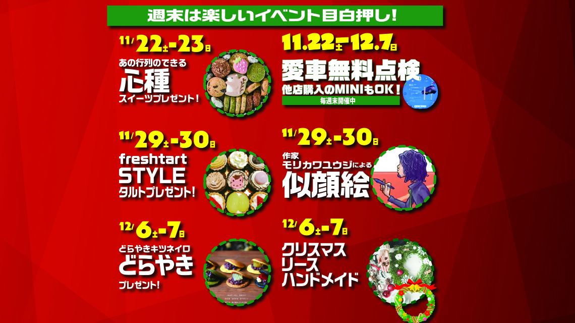 クリスマス大感謝祭 毎週末に無料イベント開催